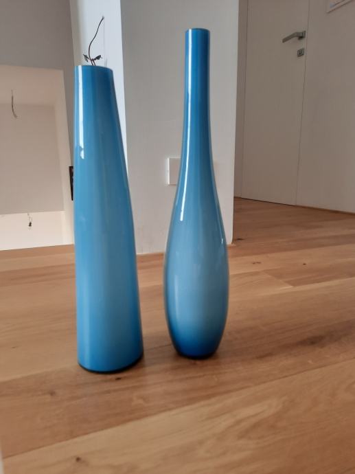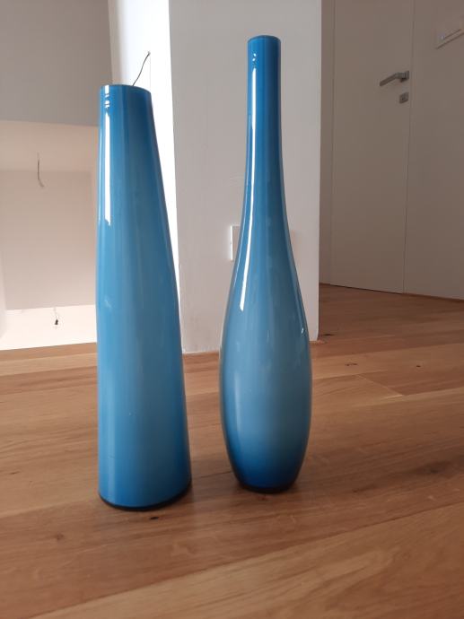 Prodam dve modri stekleni vazi, višine 40 cm in 45 cm.