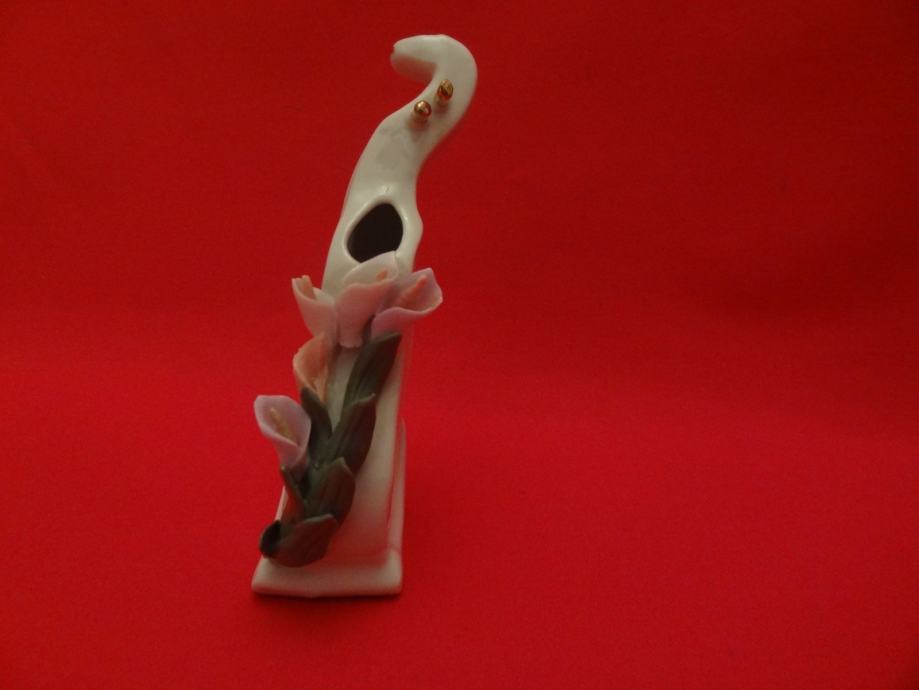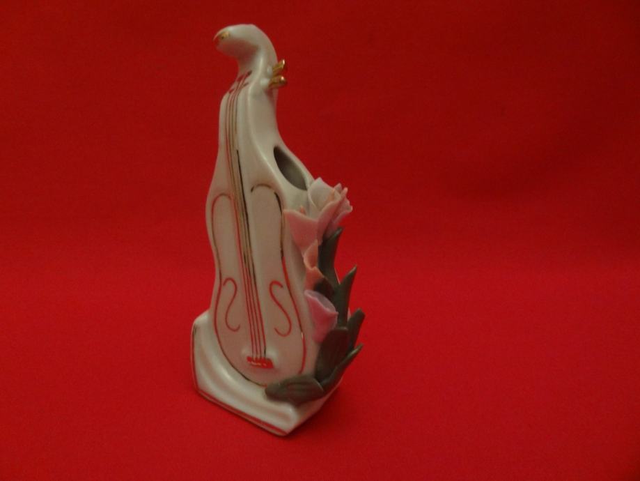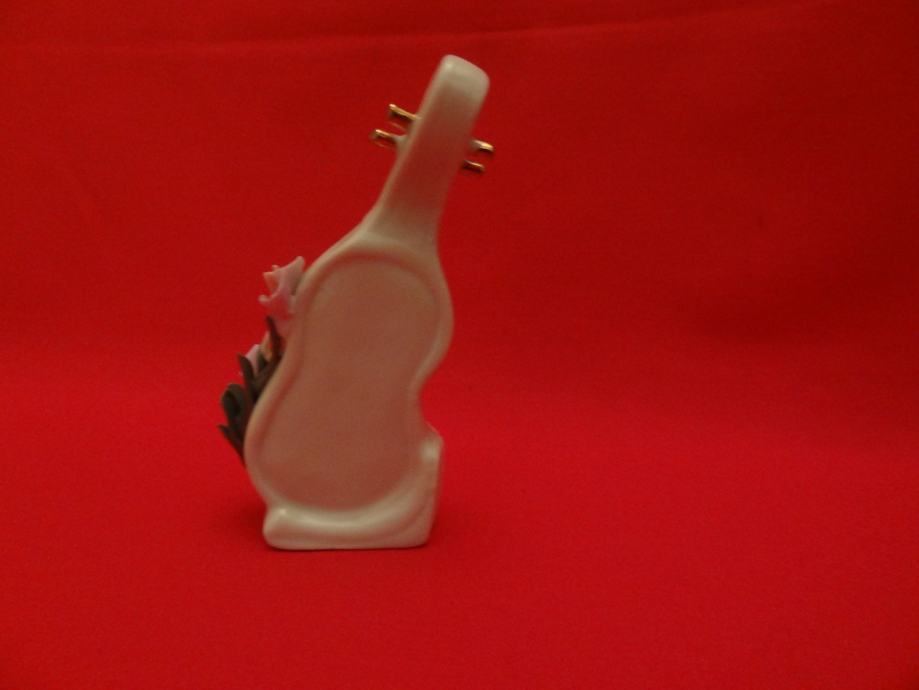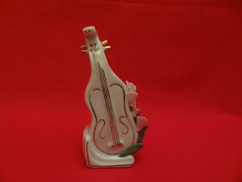 LEPO OHRANJENA DEKORATIVNA VAZICA IZ VITRINE V OBLIKI GLASBENEGA INŠTRUMENTA. MORDA BI LAHKO BILA LEPO DARILCE PRIJATELJICI GLASBENICI. DEKORATIVNA VAZICA JE VISOKA 12,5 cm, DOLGA 6 cm, ŠIROKA 3,3 cm.
