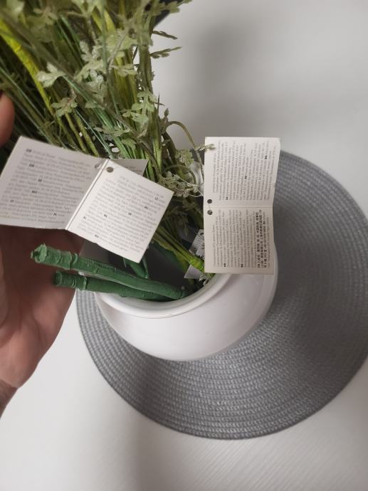 V kompletu prodam vazo z cvetjem, visoka 25cm. Na cvetju so se etikete