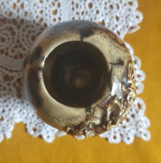 UNIKATNA KERAMIKA, DEKORATIVNA, OKROGLA KERAMIČNA VAZICA, ROČNO IZDELANA. DETALJI Z 12% POZLATO.