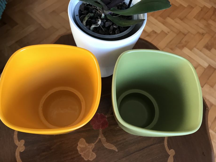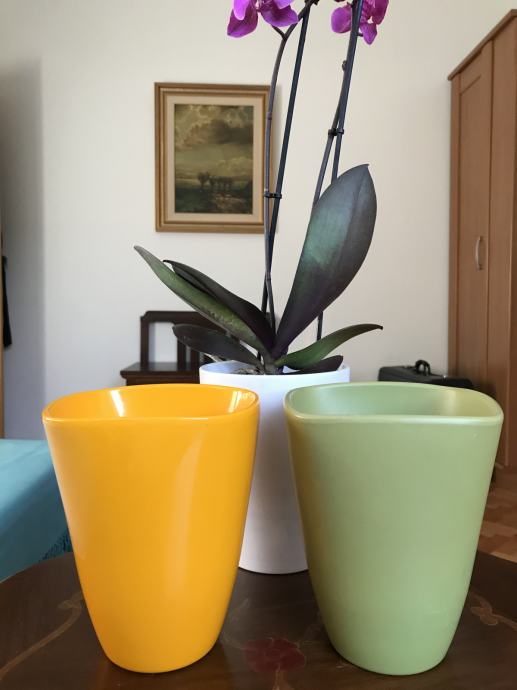 Prodam dve vazi ali lahko okrasna keramična lonca za orhideje. Visoka sta 17 cm. Izbirate lahko med zeleno ali rumeno barvo. Kos je 3 evre. Tel. 040 559 560.