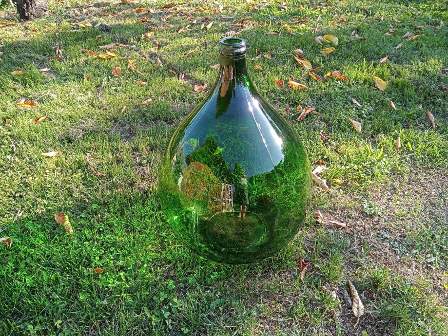 Demižon, zeleno steklo, višina 55cm, premer 42cm