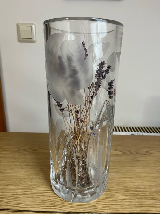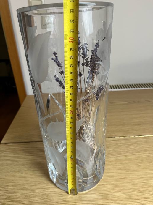 Prodam nepoškodovano kristalno vazo s cvetličnim motivom velikosti 33 cm.
