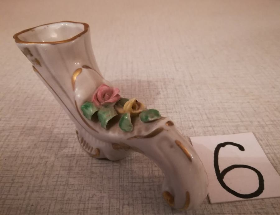 6. Vaza porcelanska,višne 5,5cm in dolžine 12cm. Cena 6€.