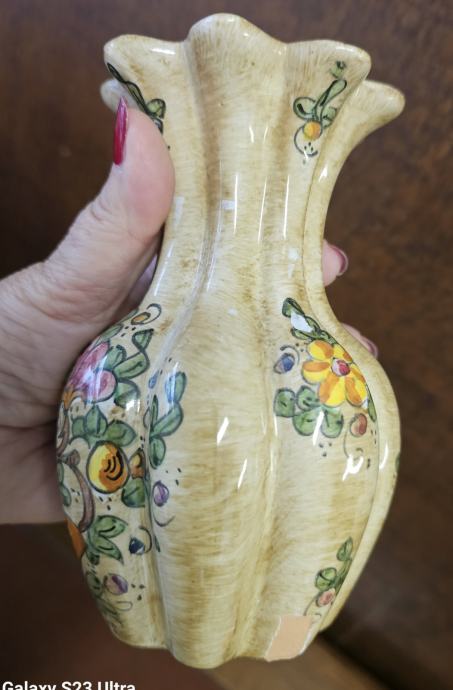 VAZA JE BREZHIBNA. JE IZ KERAMIKE, LEPA OBLIKA. ZA PRIMERJAVO VELIKOSTI, JO DRŽIM V ROKI. PRIJAZNO VABLJENI K OGLEDU DRUGIH MOJIH OGLASOV. PREVZEM MOŽEN NA OBALI, LAHKO POŠLJEM PO POŠTI. INFORMACIJE NA T.ŠT. 040453833.