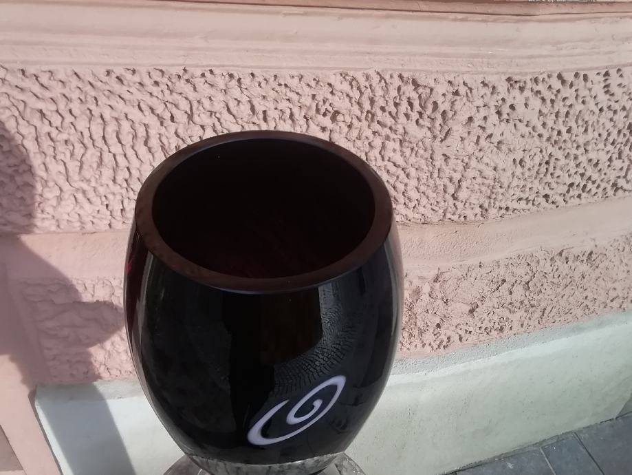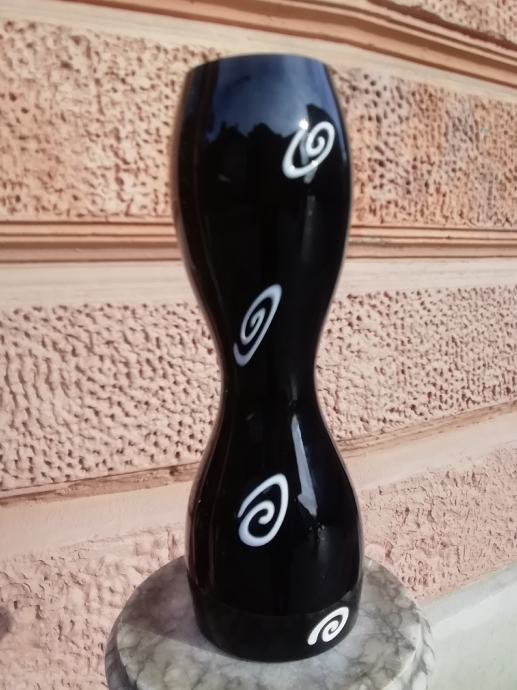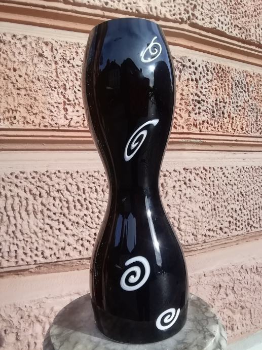 VAZA, starejša, vintage, iz 70-ih let, črne barve z belimi vzorci, višja, ročno izdelana, iz beneškega stekla, podpisana, odlično ohranjena, Vis. 45cm,prodam.tel.070/271-607.