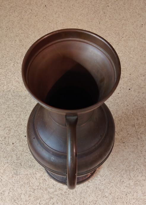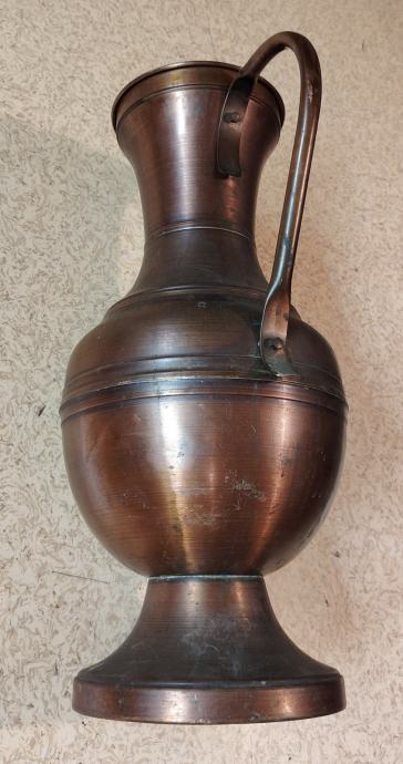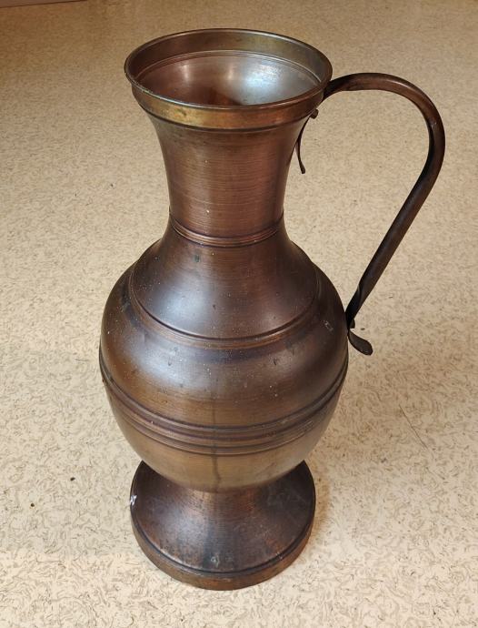 VINTAGE, VELIK BAKREN VRČ Z ROČAJEM, PASARSKI IZDELEK. LAHKO SE GA UPORABI V DEKORATIVNE NAMENE, KOT VAZA ZA VEČJE CVETLIČNE ARANŽMAJE.