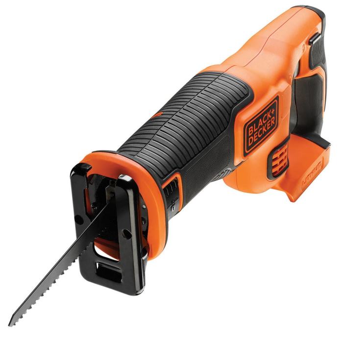 Black+Decker baterijska sabljasta žaga BDCR18N 18 V navdušuje s kompaktno zasnovo in majhno težo za optimalno delovno udobje. Veliki gumijasti ročaji zagotavljajo varno držanje žage in zelo natančno spremljanje dela. Preklopna elektronika zagotavlja, da se žaga zažene nadzorovano in da delo poteka v skladu z materialom. Zamenjava žaginega lista brez orodja pomeni hitro in varno menjavo pribora. Baterijska sabljasta žaga je vsestranska, uporablja se lahko v hiši in na vrtu._x000D__x000D_Baterijska sabljasta žaga ima tudi prilagodljivo podporo, zaklepno stikalo in spremenljivo hitrost.Vse izdelke 18 V sistema podjetja Black+Decker lahko upravljate z isto baterijsko platformo. Na voljo so 3 baterije z različno zmogljivostjo: 1,5 Ah, 2 Ah in 4 Ah._x000D__x000D_Komplet vključuje:- Black+Decker baterijska sabljasta žaga BDCR18N- 1 žagin listBaterija in polnilnik nista priložena._x000D_