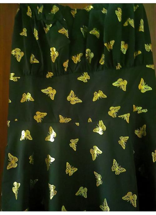 Črna obleka A kroj, z Zlatimi metuljčki, xs, s, sm