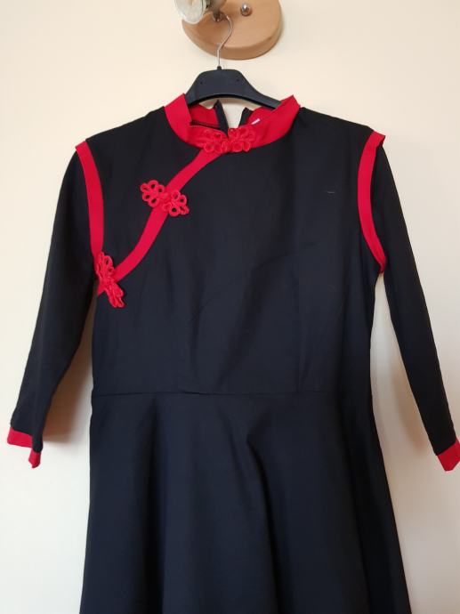 Nova, ni podložena, je raztegljiva, zapenja se zadaj z zadrgo, rokavi so do komolca