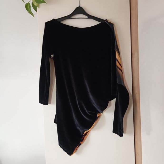 Nošena samo 1x, asimetrična, ni podložena, je raztegljiva, krojena v obliki metulja, dolžina je 90cm, ne menjam, ptt ni vključena v ceno