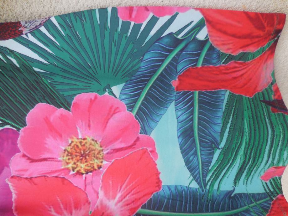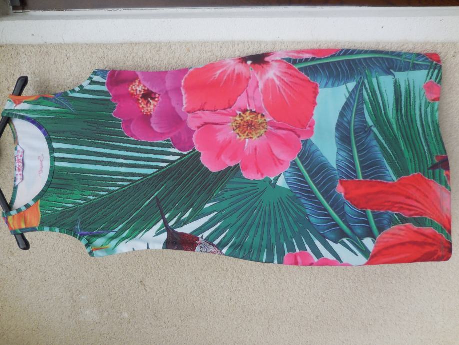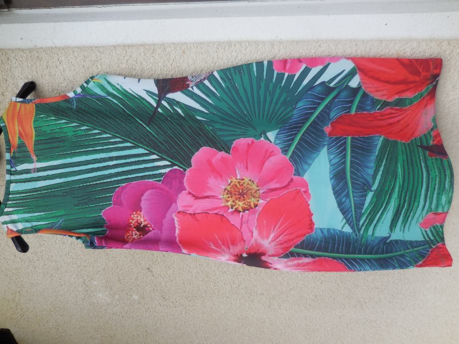 Nova, nenošena zelena cvetlična obleka Smash. Obleka je iz malo debelejšega, kompaktnega materiala, ni položena in je delno raztegljiva, dolžina sega do kolen.