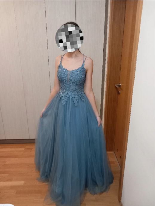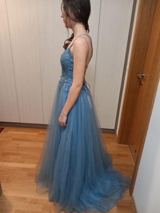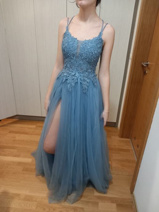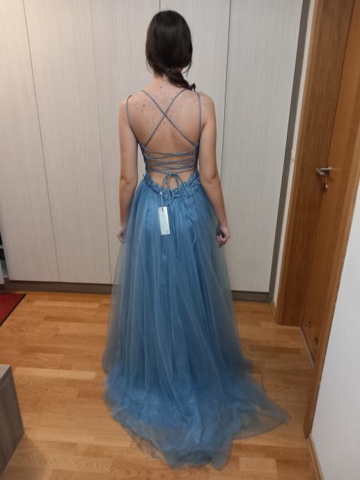 Prodam nenošeno svečano obleko v svetlo modri barvi v velikosti XS-S.
