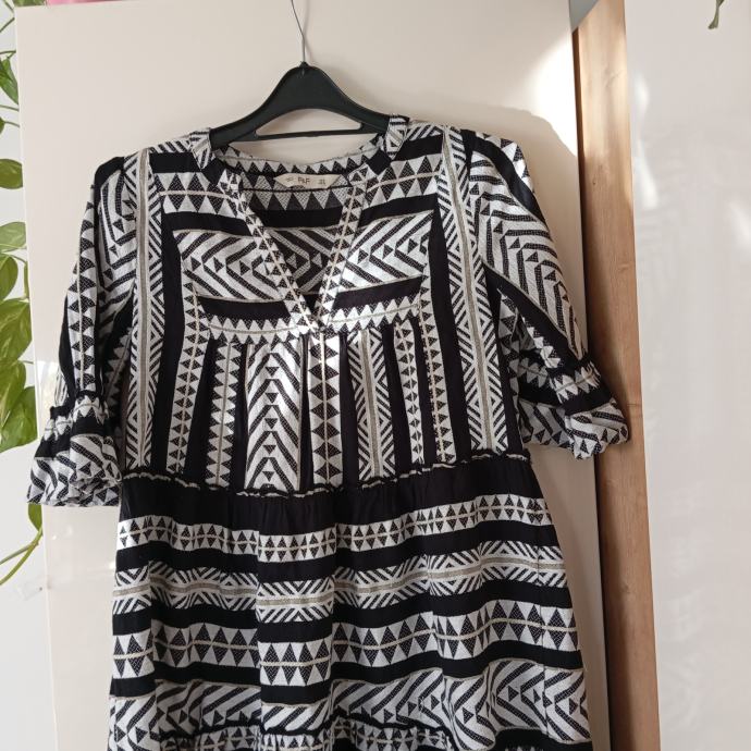 izredno lepo ohranjena, bombažna, ni podložena, ni raztegljiva, od ene pazduhe do druge meri 47cm, dolžina zadaj je 105cm, spredaj pa 90cm, ne menjam, ptt ni vključena v ceno