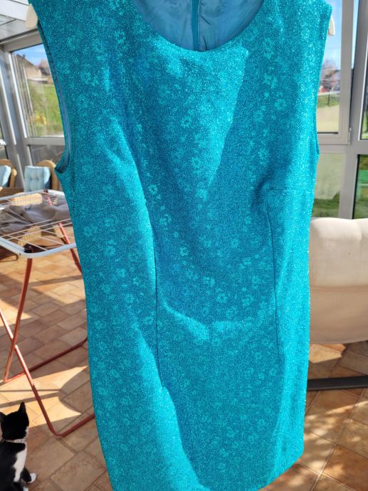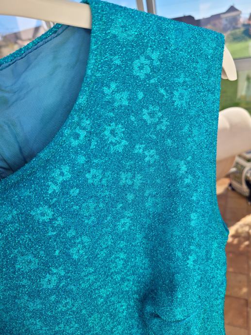 Zelo zelo lepa in atraktivna oblekica v številki M (tudi s/m) glamour svetleča obleka v 36/38, 38. Turkizne barve, svetlejša turkizna kot je na sliki.