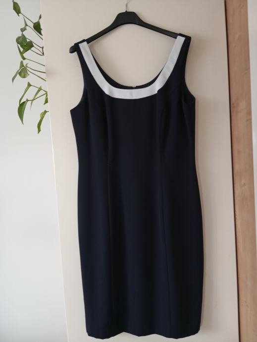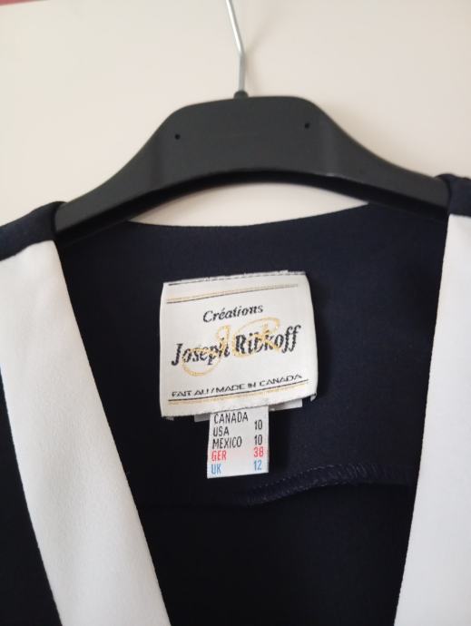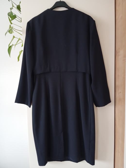 Izredno lepo ohranjen, višji cenovni razred, ni podložen, obleka je podložena in ni raztegljiva, od ene pazduhe do druge meri 48cm dolžina je 94cm, zapenja se zadaj z dolgo zadrgo, suknjič je odpet in meri od ene pazduhe do druge 51cm, dolžina je 38cm, od enega ramenskega šiva do drugega je 42cm, ne menjam, ptt ni vključena v ceno