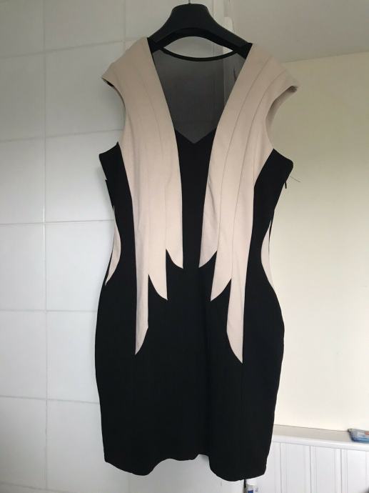 Nikoli nošena, zelo kompaktna in kvalitetna, kratka, ni podložena in je raztegljiva, primerna za S ali M, zapenja se ob strani z zadrgo.
