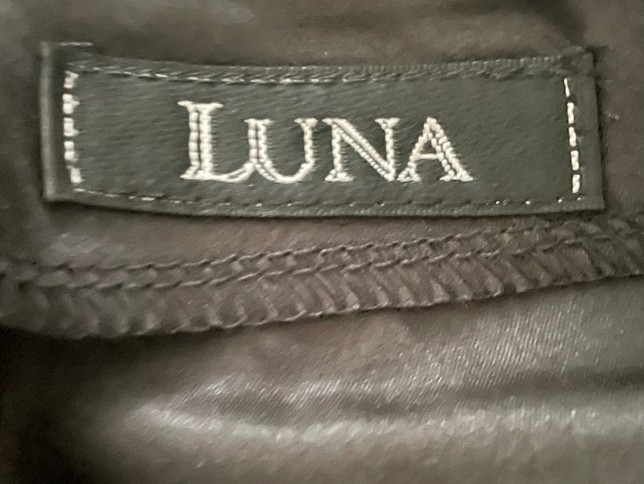 Svečana obleka iz črne čipke z zlatimi nitmi blagovne znamke Luna, velikost 34, dolžina cca do kolen.
