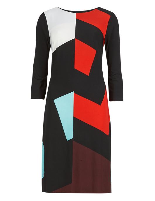 Nikoli nošena obleka zanimivih barv. Obleka je raztegljiva.