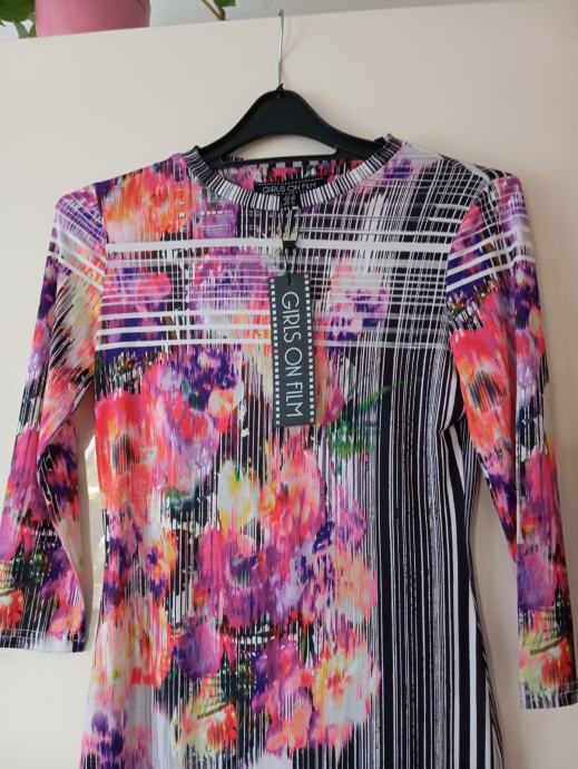 nova z etiketo, ni podložena, je raztegljiva, od ene pazduhe do druge meri 44 do cca 50cm, dolžina je 105cm, ne menjam, ptt ni vključena v ceno