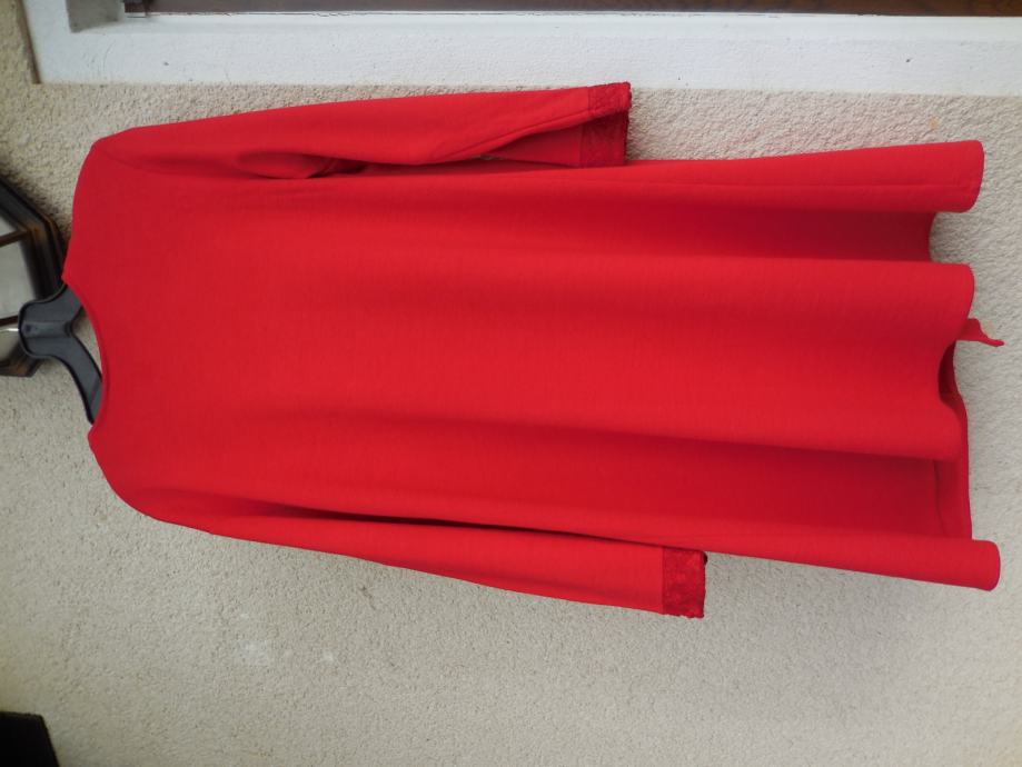 Čudovit nov komplet mini obleke in plašča. Ni podložen in je raztegljiv. Obleka ima na izrezu čipko. Obleka je kratka, plašč je nekoliko daljši. Komplet je primeren za vse tiste, ki imate rade mini obleke in tiste, ki ste nekoliko nižje postave. Originalna oznaka je L, primeren je tudi za M.