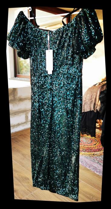 Nova obleka iz bleščic, zelena, midi dolžina,