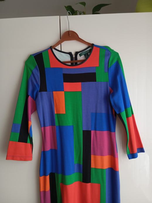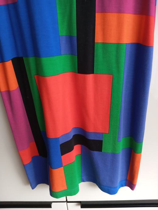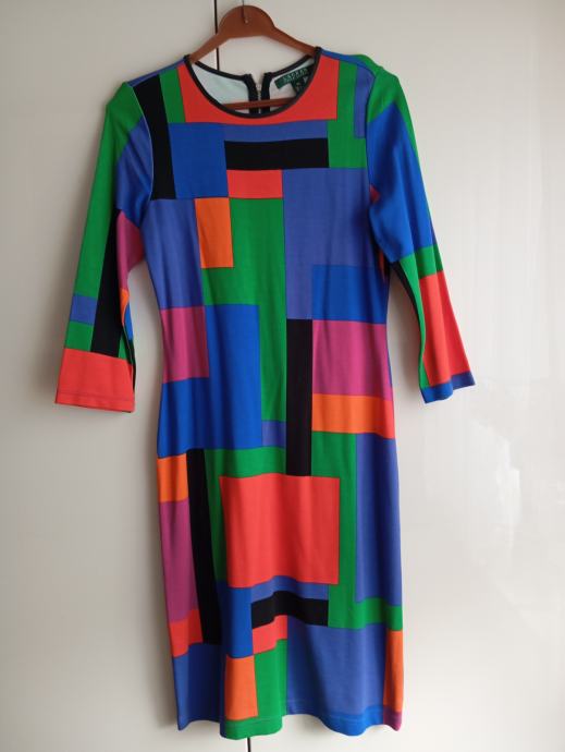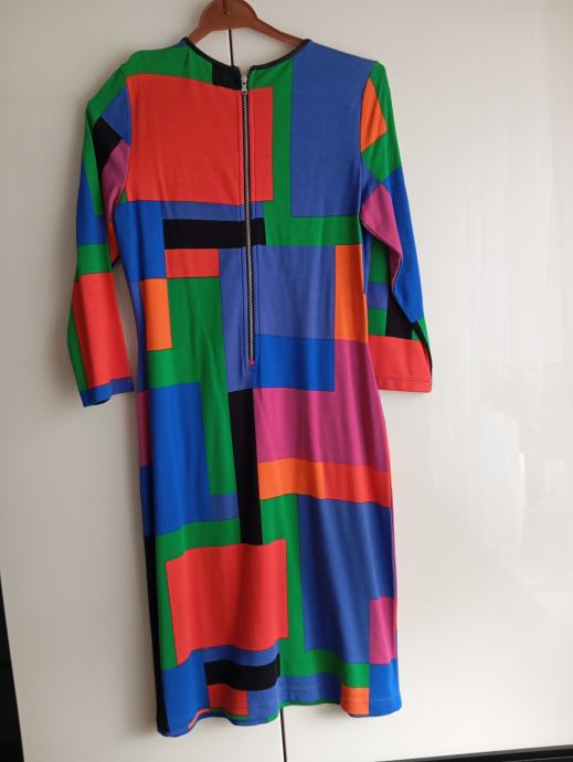 Obleka ni bila nikoli nošena, bila pa je pri šivilji nekoliko skrajšana. Od ene pazduhe do druge meri 42cm, dolžina je 95cm, dolžina rokava je 3/4, orig. vel. je XS, primerna je tudi za S, ne menjam, ptt ni vključena v ceno
