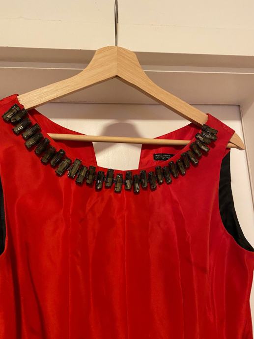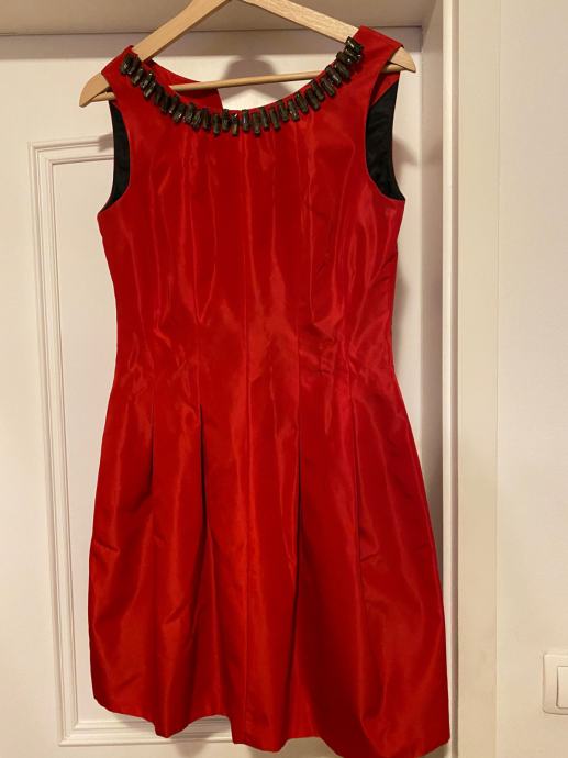 Prodam 1x nošeno koktejl satenasto obleko rdeče barve.