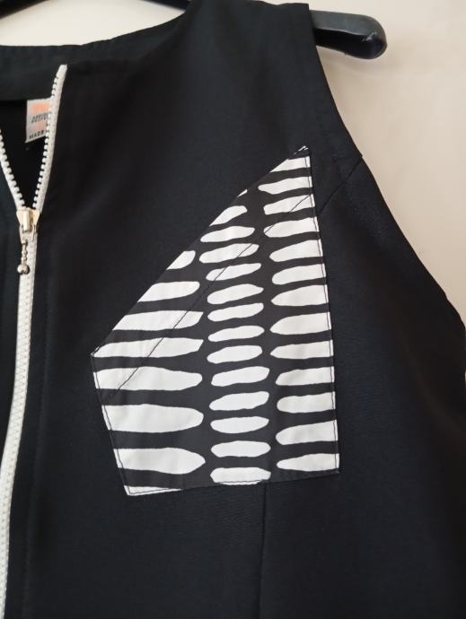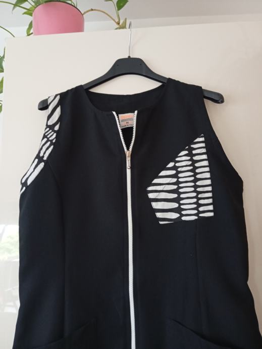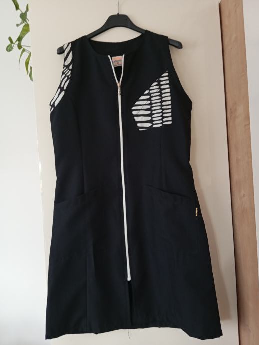 Nova, ni podložena, ni raztegljiva, na sprednji strani ima 2 žepa, zapenja se z zadrgo po celotni dolžini. Od ene pazduhe do druge meri 49cm, dolžina je 92cm. Ne menjam, ptt ni vključena v ceno