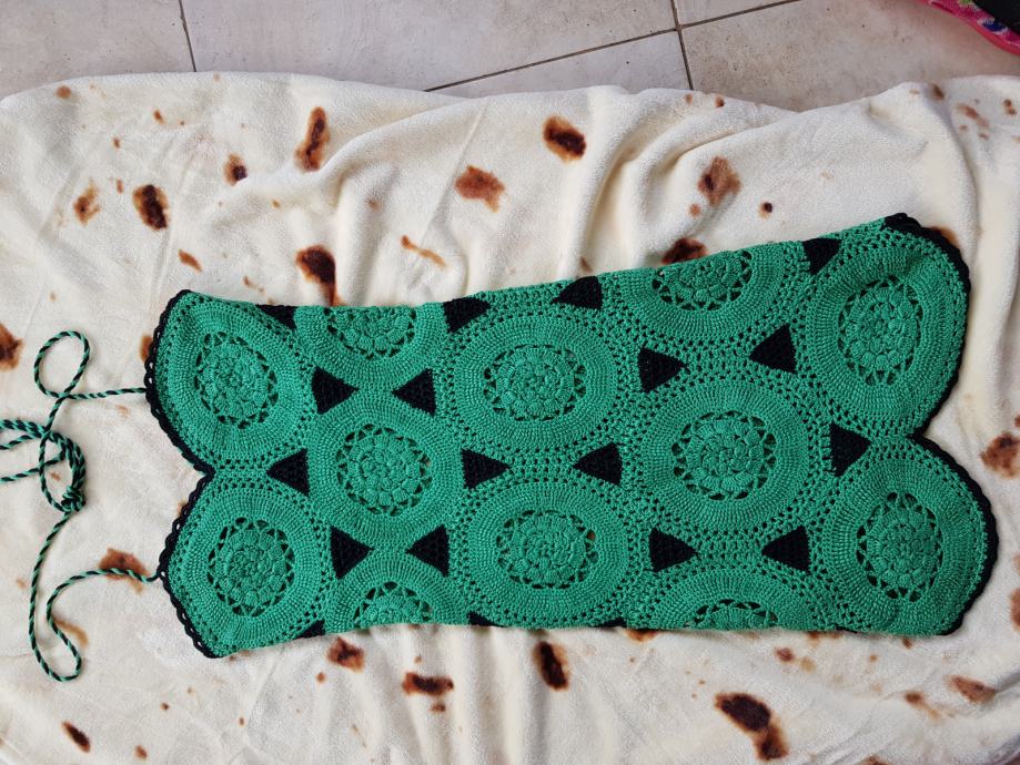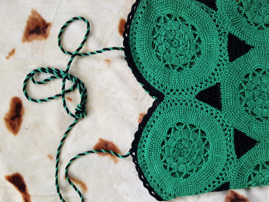 Nova, delana po naročilu, unikatna, pletena iz bombaža, ni podložena, malenkost raztegljiva,