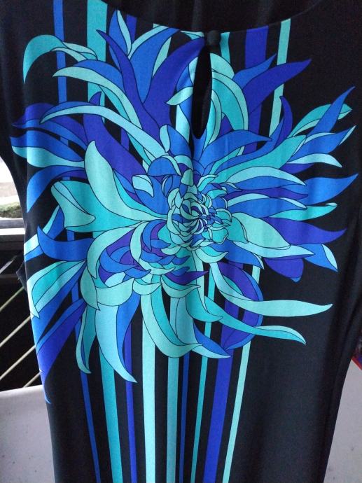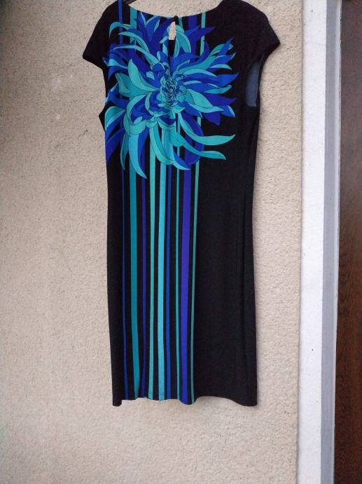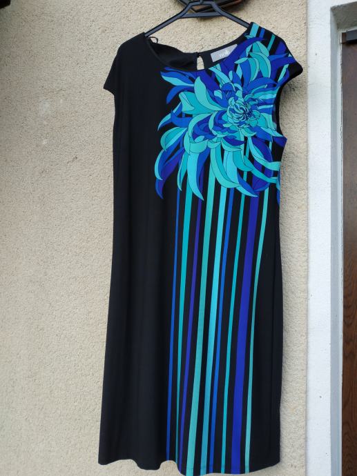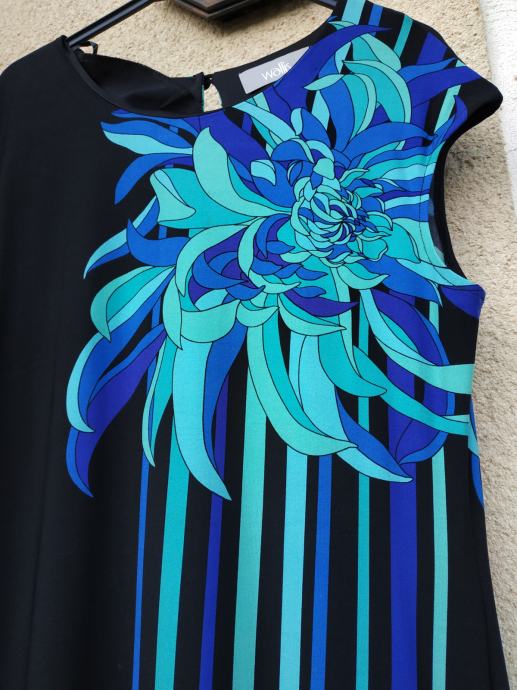 1x oblečena čudovita Wallisova obleka, primerna za pomlad in poletje. Obleka ni podložena in je raztegljiva, dolžina je do sredine kolen, zapenja se zadaj na majhen gumbek.