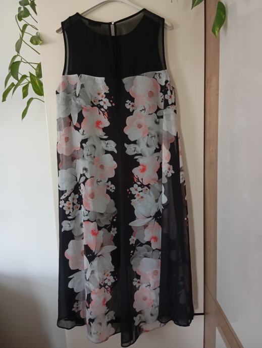 nova z etiketo (77€) , dvojna, ni raztegljiva, od ene pazduhe do druge meri 52cm, dolžina črnega dela obleke je 98cm, celotna dolžina je 120cm,