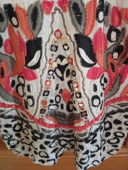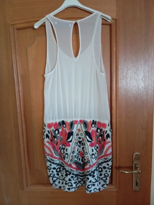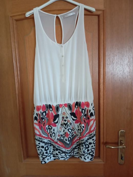 Obleka je bila nošena samo 2x, je pa potrebna čiščenja. Od ene pazduhe do druge meri 46cm, dolžina je 90cm, ni podložena in ni raztegljiva, ne menjam, ptt ni vključena v ceno