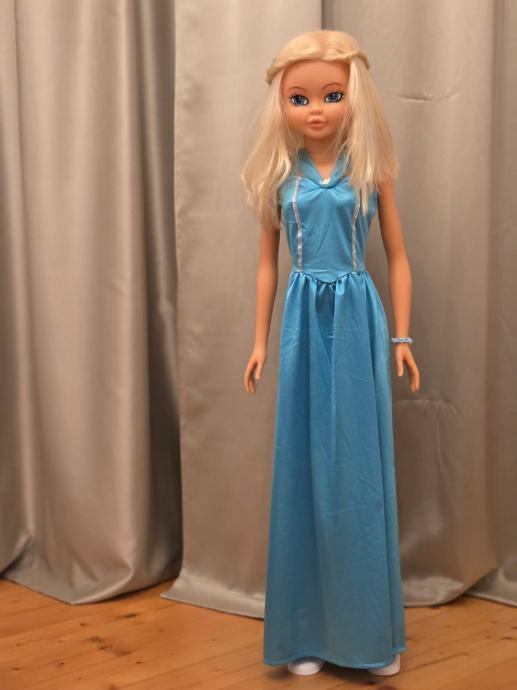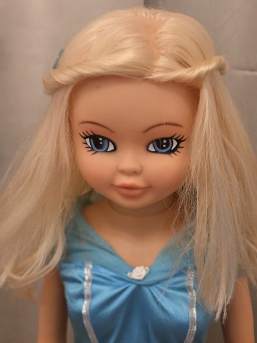 Večja punčka, višina 105 cm. Je kot nova, skoraj nič ni bila uporabljena. Ima lepe lase, lahko se jo čese in se ustvarja različne frizure.