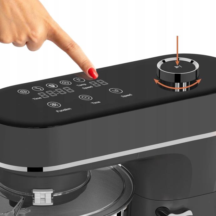 Ključna lastnost tega modela je vgrajena ogrevana posoda, ki omogoča pripravo zahtevnih receptov, kot so toplo kvašeno testo, temperiranje čokolade ali priprava krem, ki zahtevajo natančno temperaturo. Vse funkcije upravljate preko modernega LCD zaslona na dotik (Touch), kar vam omogoča enostavno izbiro programov, hitrosti in natančnega nadzora nad temperaturo.