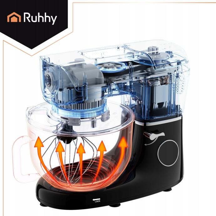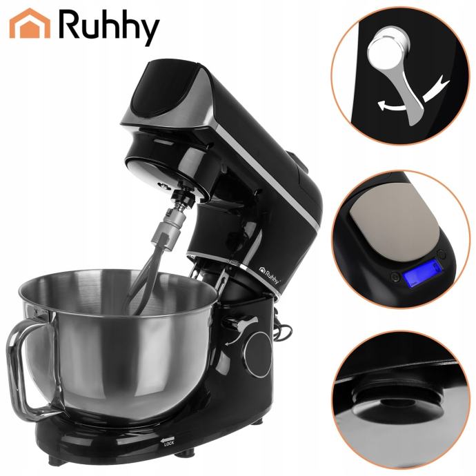 Večfunkcijski robot RUHHY je več kot le klasičen mešalnik – združuje mešanje, stepanje, gnetenje, tehtanje in segrevanje , vse to v elegantni zasnovi z velikim zaslonom in intuitivno nadzorno ploščo.