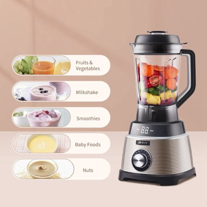Z mešalnikom JIMMY B53 lahko pripravljate zdrave napitke, juhe, omake, ter ostala okusna živila. Ima pulzno stikalo, ki bo omogočilo še dodatno moč ter učinkovito mešanje do gladke zmesi. Tiha kupola, ki je namenjena blaženju zvoka pa je še posebej odlična za pripravljanje napitkov v zgodnjih jutranjih urah.