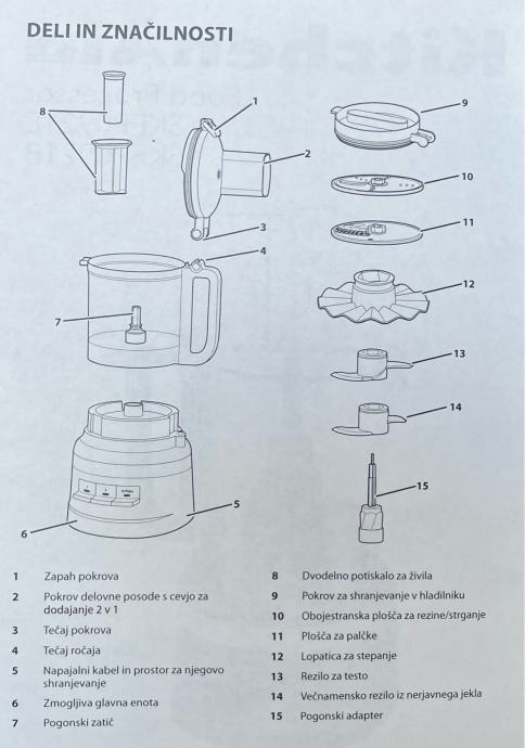 Z nastavki omogoča sekljanje, strganje, mletje, rezanje, gnetenje, stepanje, penjenje, miksanje, piriranje in mešanje.