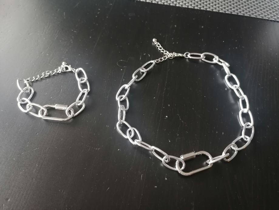 Ogrlica in zapestnica v srebrni barvi
