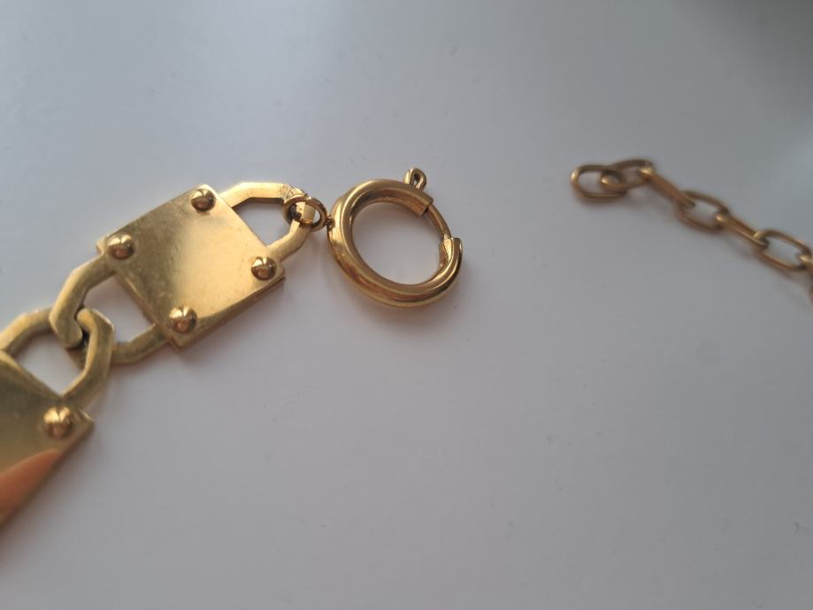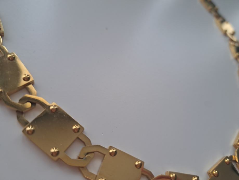 Čudovita masivna ogrlica iz jekla, prevlečena z 18k zlatom. Dolžina 47cm + 5cm podaljška.