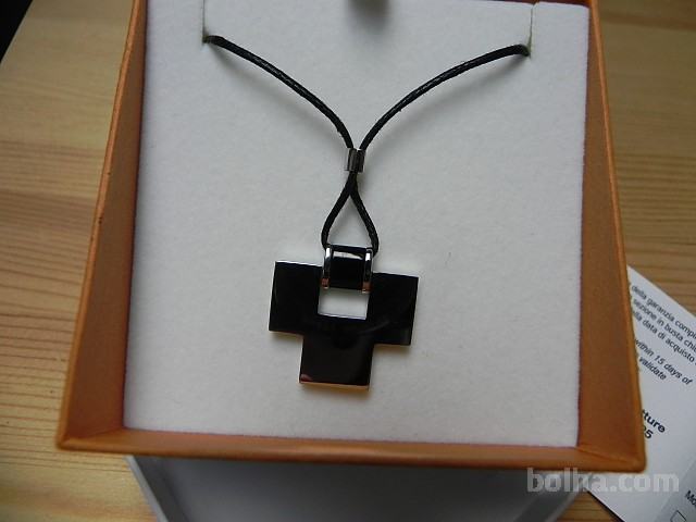 Prodam NOV (nikoli uporabljen) nakit - OGRLICO, jeklen obesek na elegantni črni vrvici. Nakit je zapakiran v original embalaži, prilagam tudi potrdilo o nakupu (ŽIGOSANO IN PODPISANO). Obesek je primeren kot darilo.