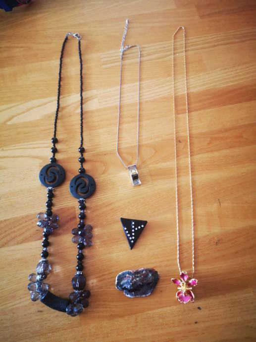 Kot na sliki, pozlačena orhideja je lahko obesek ali broška. Ta je 4€, črne ogrlice mi več.ala z zelenim obeskom pa 4€. Broške so na drugem mojem oglasu. 031 657 809