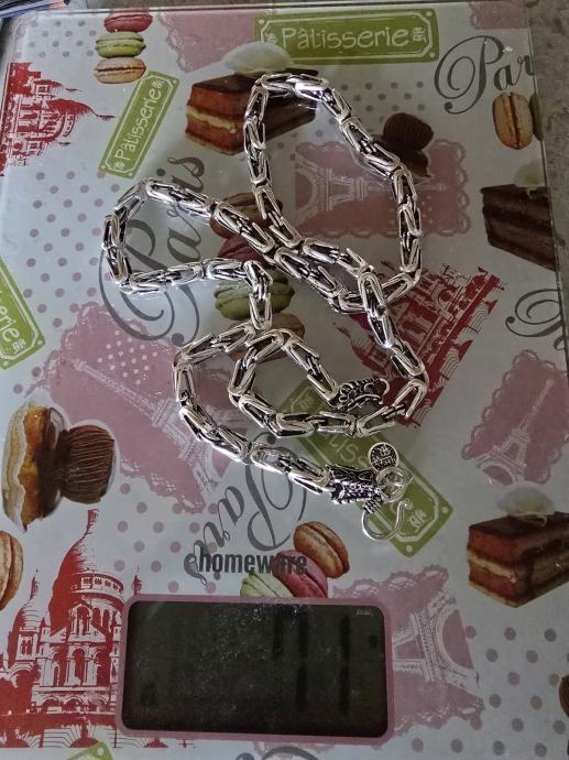 SREBRNA VERIŽICA KRALJEVI VEZ, DOLŽINA 62CM,TEŽA 71 GRAMOV, MASIVNA, PRAVO SREBRO, NOŠENA SAMO 1X NA PRIREDITVI,KOT NOVA UGODNA CENA, TEL.031 275 440