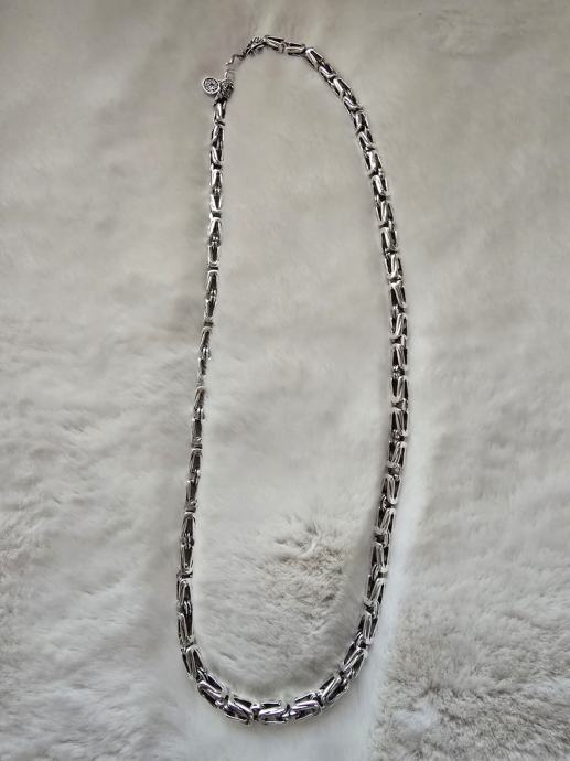 SREBRNA VERIŽICA KRALJEVI VEZ, DOLŽINA 62CM,TEŽA 71 GRAMOV, MASIVNA, NOŠENA SAMO 1X NA PRIREDITVI, PRAVO SREBRO, KOT NOVA, UGODNA CENA, TEL.031 275 440