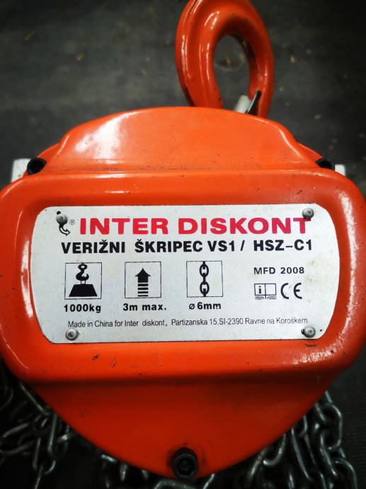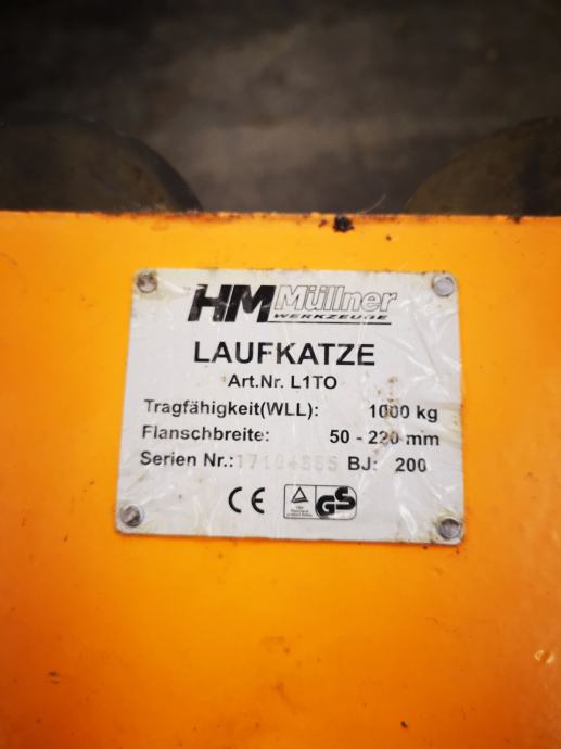 Zelo malo rabljen verižni škripec z mačkom nosilnosti 1000 kg.
