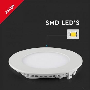 Podometni LED panel / SMD čip / Belo ohišje / 3W / 130lm / 120° / Nevtralna bela 4000K / Φ 84mm Prednosti izdelka