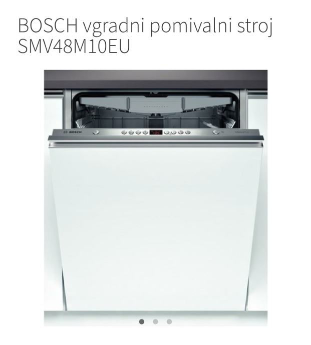 Prodam vgradni pomivalni stroj Bosch SMV48M10EU. Stroj je v okvari (E09, okvara grelca). Primeren za servis ali za dele.