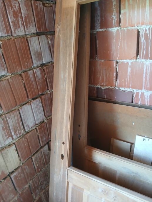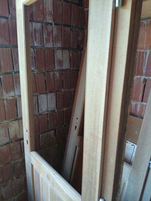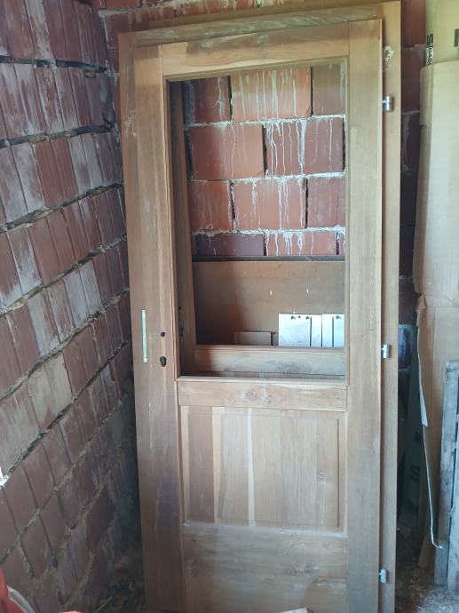 Prodam Hrastova vrata z podbojem , na vratih odprtina za steklo.