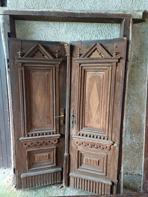 Vrata so hrastova in zelo dobro ohranjena. Višina samih vrat je 188cm, štoki so pa 215cm, širina z štoki 140cm. Vmes je bila šipa samo je bila razbita. Moj kontakt Tomaž 069401345. Cena vrat 450€. Ogled Korenitka 2, Trebnje na Dolenjskem.