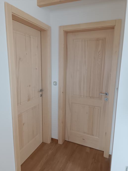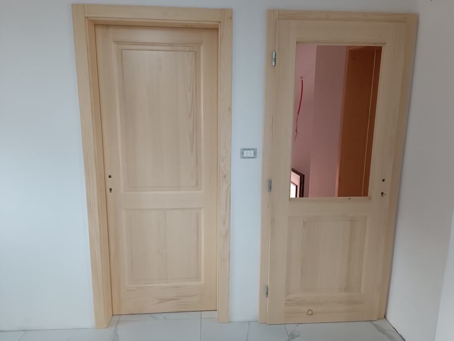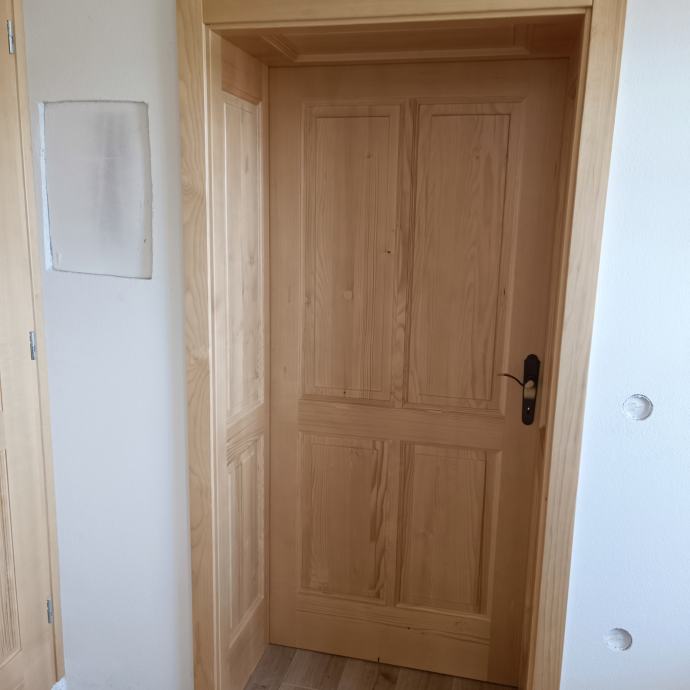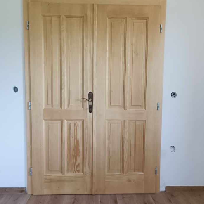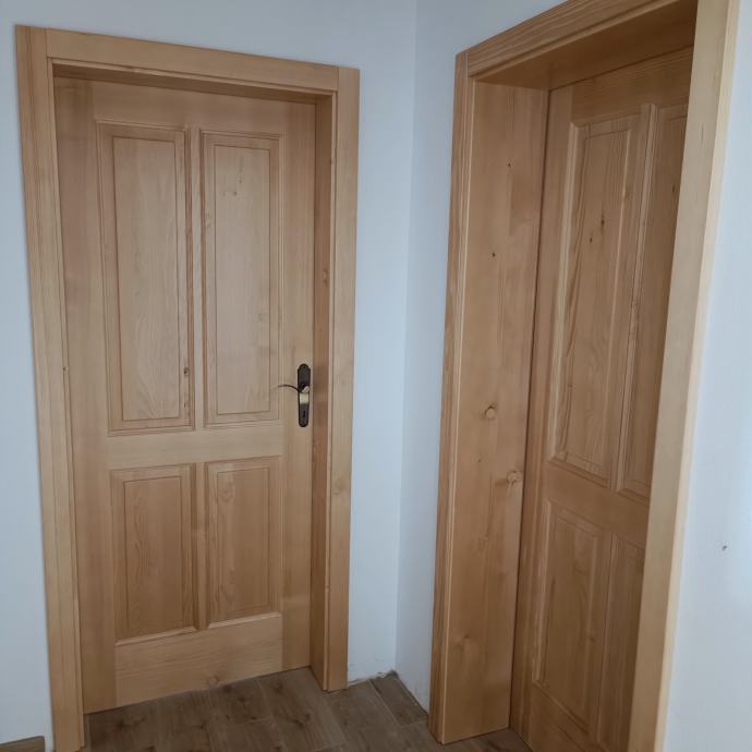 Masivna smrekova vrata,konplet okovje razen kljuke ,nebarvana do globine podboja 16cm z zaključki.